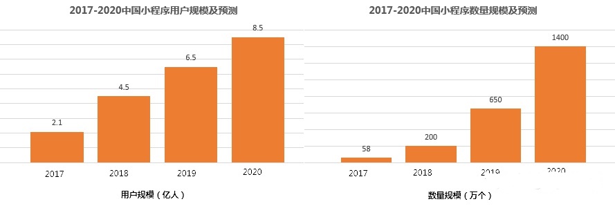 被普遍看好是新的發(fā)展方向,小程序正是在這樣的“風(fēng)口”下快速爆發(fā)的。根據(jù)數(shù)據(jù)顯示2019年中國小程序數(shù)量預(yù)計將突破650萬個,到2020年更將進一步突破1400萬個,小程序的用戶規(guī)模也將超過9億。